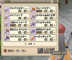 見て分かるように,遠隔系が使う武器には弓と銃がある。両方使えるのだが,弾の問題でどちらかを選んで使う人が多いようだ。近接系も剣,槌,斧が使えるのだが,消耗品やスキル系統の問題はないので手に入ったものでよさそうなものに変えればよいだろう。盾を使うかで多少変わってくるが,それは好みの問題だ。